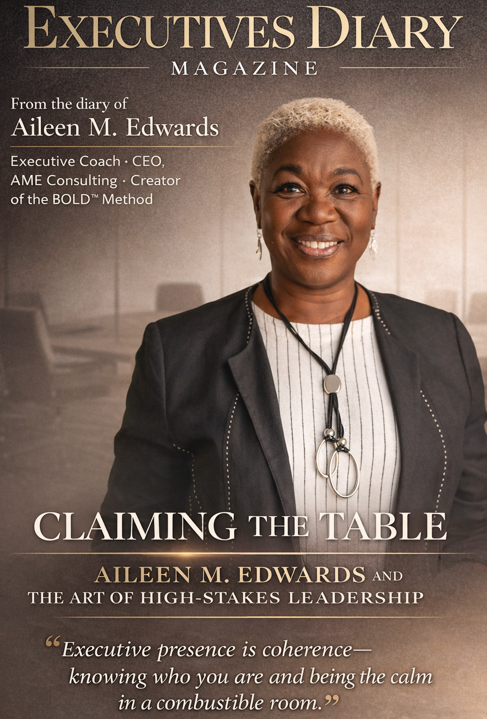 Aileen M. Edwards is an executive coach, author, and former Chief Human Resources Officer with over 30 years of leadership experience. As the CEO of AME Consulting and creator of the BOLD™ Method, she empowers women leaders to command executive presence and influence in high-stakes environments. Aileen is the author of the memoir Black Skin, Bold Heart and is a certified coach (ACC) dedicated to building inclusive leadership pipelines that allow women of color to lead with authority without shrinking.