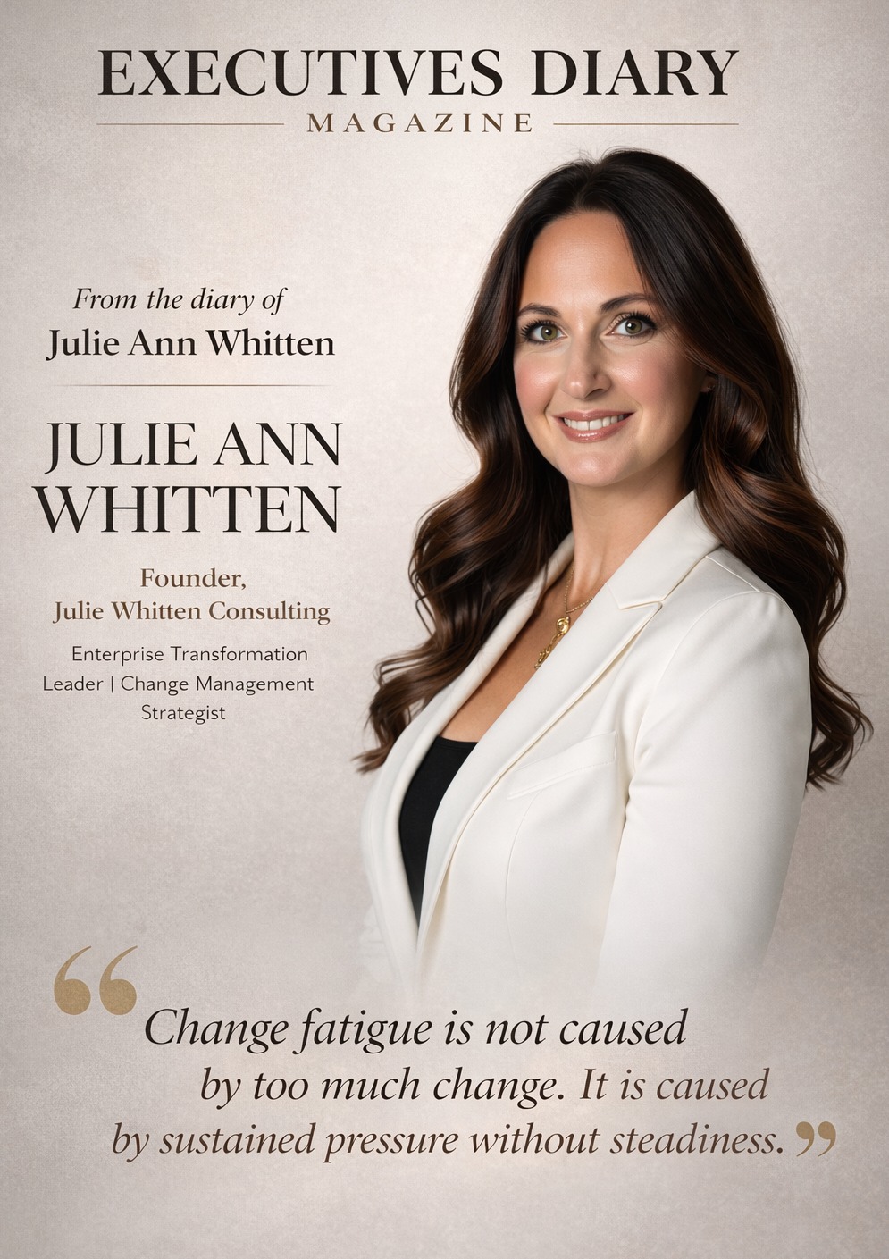 Editorial Note: Julie Ann Whitten’s journey from the “fixer” in the boardroom to the architect of “Calmfidence” serves as a powerful reminder that the most resilient foundations are built during times of greatest uncertainty. Her story challenges us to look beyond the tools of transformation and focus on the trust that makes it possible.