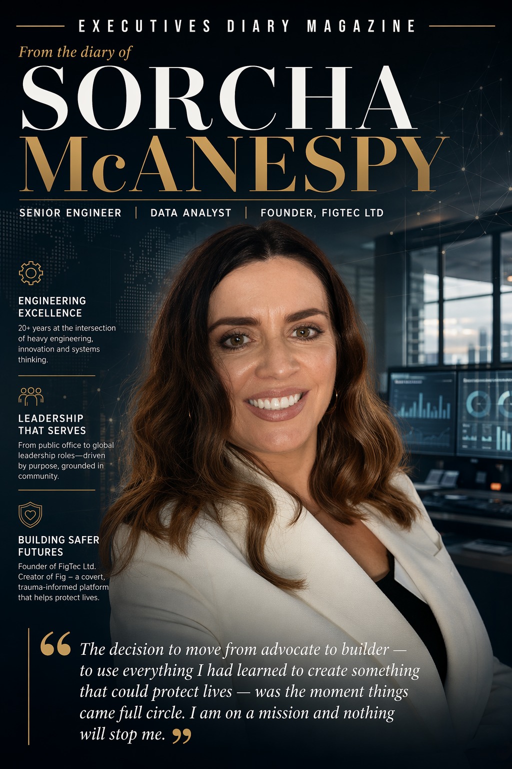 The most significant milestone of Sorcha’s career, and the one she believes will define her professional legacy is the founding of FigTec Ltd. Drawing on her expertise in engineering, data, and policy, she developed “Fig,” a covert, trauma-informed digital platform designed to support victims of coercive control. This was the moment her disparate paths converged into a single, life-saving purpose.