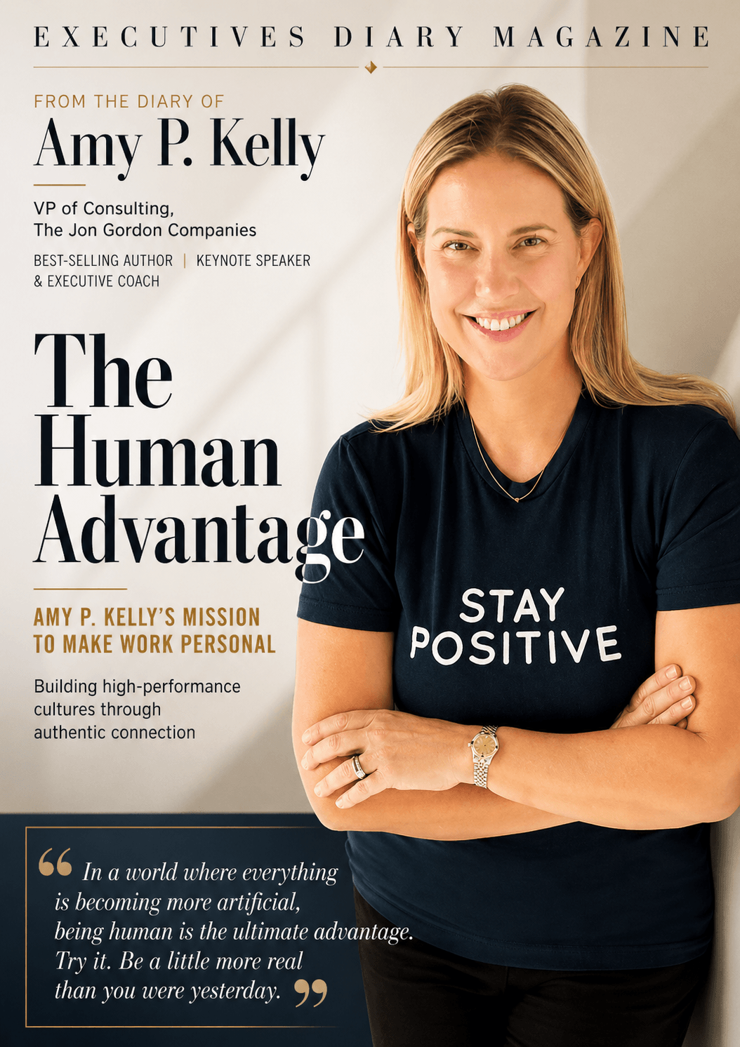 Amy P. Kelly, SHRM-SCP, is a best-selling author and organizational strategist dedicated to unlocking the “human side” of business. As Vice President of Consulting for The Jon Gordon Companies, she transforms corporate cultures by replacing sterile management with radical authenticity. Through her “BE REAL” framework and global keynotes, Amy empowers leaders to navigate difficult conversations and build high-performing teams where trust is the primary driver of measurable, lasting success.
